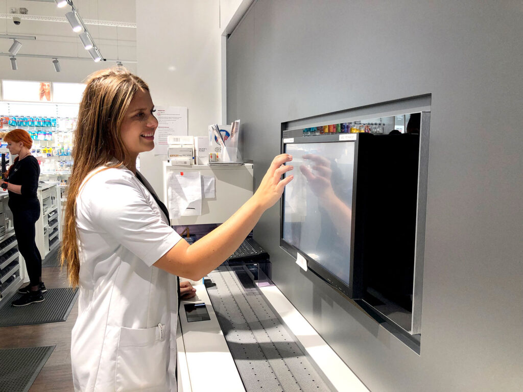 In der Apotheke des Einkaufszentrums Naestved hat der A3000-Roboter sowohl für die Kunden als auch für das Personal den Unterschied gemacht. Fast alle manuellen Aufgaben sind weggefallen, und das Personal hat viel mehr Zeit, die Kunden beim Kauf von Medikamenten zu beraten, wodurch das Geschäft wesentlich effizienter und kundenorientierter wird.